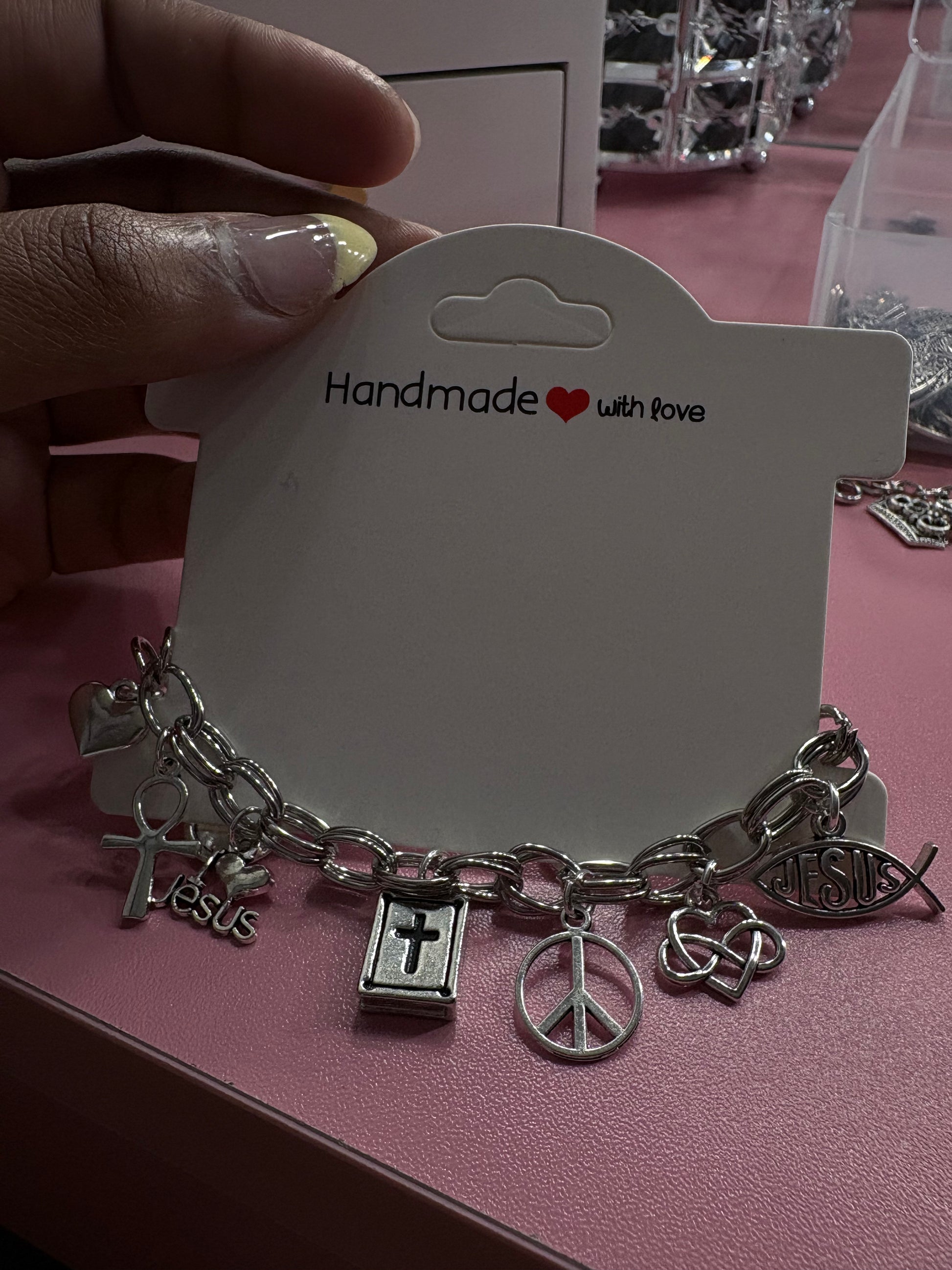 Embody your faith with our "I heart Jesus" inspired charm bracelet. Made with love and devotion, this bracelet serves as a constant reminder of your devotion to the Lord. This bracelet is a beautiful addition to any outfit and a meaningful way to show your love for Jesus.